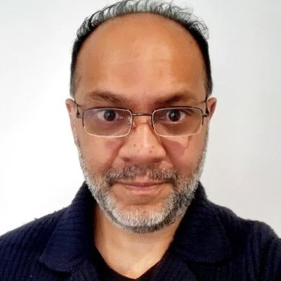 A middle-aged man with glasses, a beard, and short dark hair, wearing a dark sweater, looking directly at the camera against a plain white background.